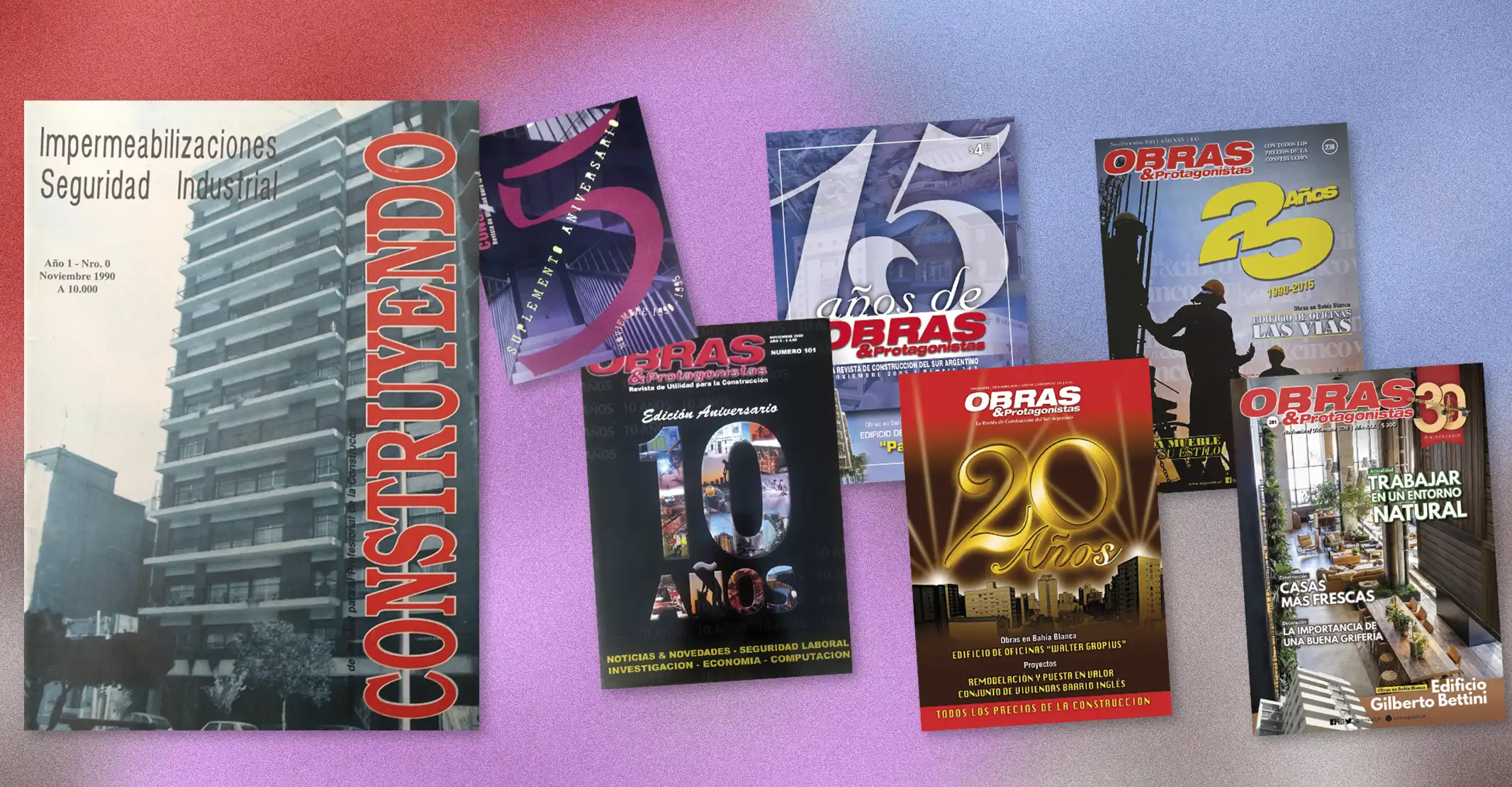 El primer número de esta revista vio la luz en noviembre de 1990. Se llamaba entonces Construyendo. Este ejemplar, renombrado Obras & Protagonistas, celebra por lo tanto sus 35 años de continuidad.