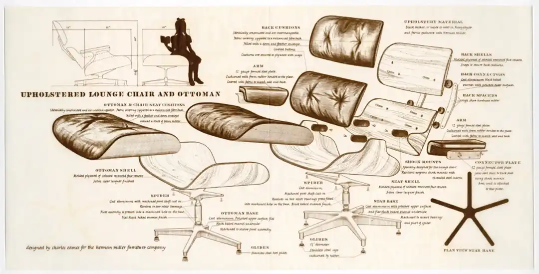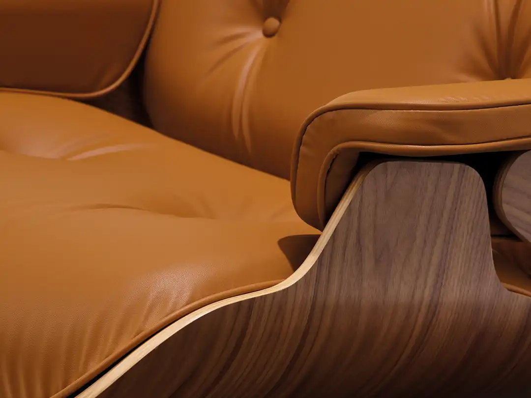 El diseño de la Eames Lounge Chair es el resultado de una cuidadosa atención al detalle y la experimentación con técnicas avanzadas de producción. Su estructura consta de tres piezas de madera contrachapada moldeada, un material que Charles y Ray Eames habían perfeccionado en proyectos anteriores. Este proceso permitió crear curvas suaves y orgánicas que se adaptan al cuerpo, ofreciendo un soporte ergonómico incomparable.