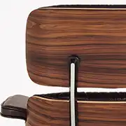 El acabado de la madera, disponible en opciones como palisandro, nogal o cerezo, agrega un toque cálido y natural al diseño, mientras que el tapizado en cuero de alta calidad aporta un aire de lujo discreto. Cada componente se ensambla con precisión, garantizando que la silla no solo sea cómoda, sino también duradera y visualmente impactante.