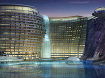 Atkin’s Architecture Group ha ganado un concurso internacional de diseño arquitectónico para erigir un fabuloso hotel de 5 estrellas con 400 habitaciones en la ciudad china de Songjiang, el cual aprovecha al máximo el paisaje ubicado en una caída de agua.