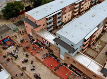 El conjunto ofrece además espacios de convivencia y tipologías de hábitat que incluyen patios a diferentes alturas y perforaciones para generar microclimas. Los ocupantes de las viviendas pueden elegir entre una intimidad completa o la posibilidad de conectar visualmente con un conjunto de vecinos, ya que la arquitectura desarrollada favorece la comunicación humana, proporciona una escala social y aumenta la calidad de vida del complejo.