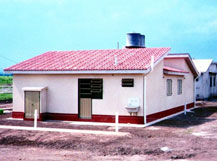 En el perímetro se localizaron espacios cubiertos destinados al equipamiento urbano (salón de usos múltiples, locales comerciales y guardería), y una pequeña plaza para mejorar la integración al barrio. Se usó estructura de hormigón con fundación por pilotes (debido a la mala calidad del suelo); ladrillos huecos cerámicos; cubierta de chapa ondulada y cielo raso de placas de yeso; pisos y revestimientos cerámicos y carpeta para recibir alfombra en los dormitorios.