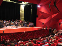 El interior gira alrededor de un gran foyer, al que están conectados todos los espacios más importantes. El teatro cuenta con dos salas de teatro, una con 725 lugares y otra, más pequeña, con 200.