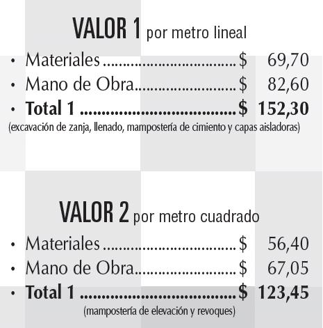 o Para la determinación de los valores se utilizaron los costos de mano de obra y los valores de materiales que figuran en la presente edición.
