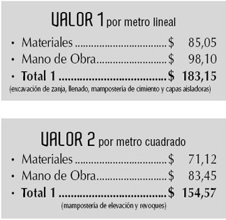 Recordamos, para quienes utilicen nuestros cómputos, que los valores de materiales incluyen el IVA, en tanto que los costos de mano de obra no contienen el beneficio empresarial, gastos generales ni impuestos.