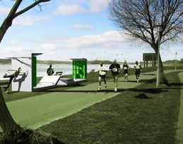 Se trata de un sistema modular que se instala en los espacios públicos con el objetivo de apoyar la práctica del deporte al aire libre.