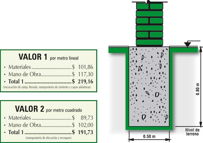 Nota: el cómputo orientativo se realiza bajo la hipótesis que el nivel del terreno, a ambos lados del muro medianero, sea el mismo. En caso que éste varíe, sugerimos consultar con un profesional para la construcción de la capa aisladora más adecuada. En caso de conflicto entre vecinos, la determinación del valor de medianería debe ser realizado por un profesional matriculado.