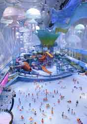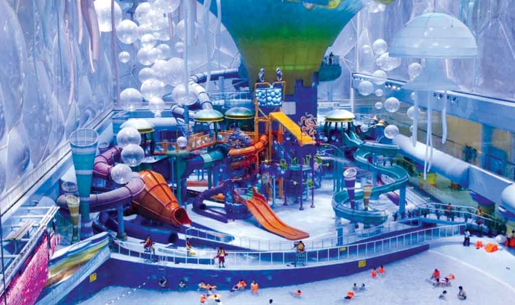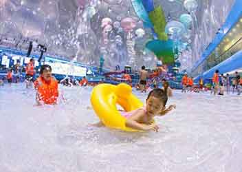El cubo contiene ahora paseos y una enorme piscina-balneario donde todos pueden nadar, salpicar y jugar, en el mismo sitio donde compitieron los atletas, disfrutando del parque de agua más grande de Asia.