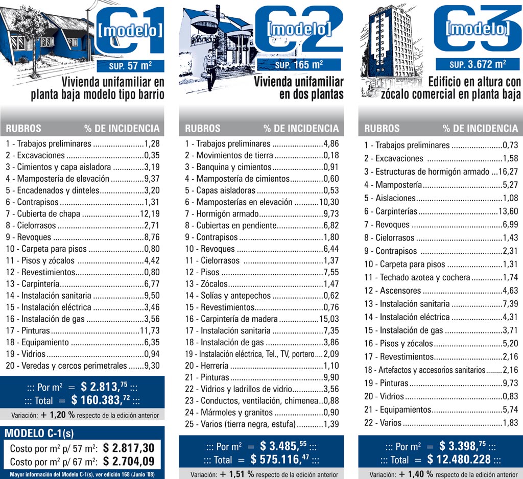 Con estas modificaciones, los valores de los tres modelos que mensualmente actualizamos tuvieron incrementos que superan el 1% para la totalidad de los modelos analizado (C1, C2 y C3).