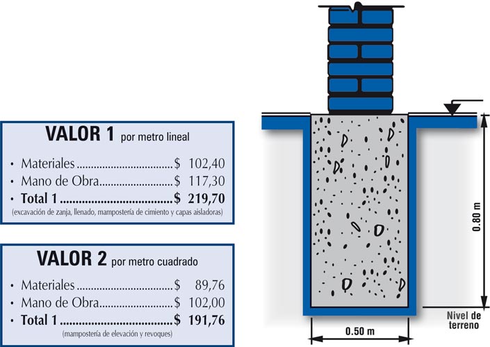 Nota: el cómputo orientativo se realiza bajo la hipótesis que el nivel del terreno, a ambos lados del muro medianero, sea el mismo. En caso que éste varíe, sugerimos consultar con un profesional para la construcción de la capa aisladora más adecuada. En caso de conflicto entre vecinos, la determinación del valor de medianería debe ser realizado por un profesional matriculado.
