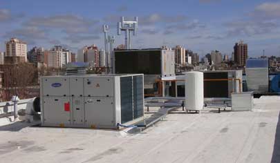 El espacio entre cielorrasos suspendidos y losa de hormigón aloja los servicios de distribución de redes, permitiendo el acceso a las mismas para su fácil expansión.La altura de los mismos está pensada para dar espacio a los ductos de distribución de aire frío caliente por medio de conductos metálicos. Este sistema de climatización merece una especial descripción ya que cuenta con equipos centrales que cumplen con las normas Americanas y Europeas para los niveles de bioseguridad 3 y 4. Debe contemplarse que los laboratorios, por normas sanitarias, no pueden tener contacto al exterior con aberturas tradicionales, debiendo preverse la renovación de aire por medios mecánicos (aire acondicionado). Asimismo en sectores de mayor exigencia el filtrado de aire llega a un 97% (filtros absolutos) y en el sector de Bioanalítica la renovación de aire exterior es total. Se logra también presiones interiores positivas que no permiten ingreso de aire contaminado a los laboratorios.