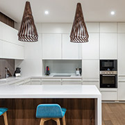 La ventaja de una cocina con muebles de obra es que se puede simplificar mucho su diseño para reducir el presupuesto. Las cocinas, son un espacio muy aconsejable donde podemos implementarlo, ya que, con ellos, solucionamos mesadas y bajo mesadas, islas y lugar de almacenaje. Si estos quedan abiertos, será necesario mantener el orden para evitar el caos visual. Una alternativa es anexar puerta a algunos de estos módulos y dejar otros a la vista. También se puede optar por módulos abiertos con estantes y organizar en ellos los accesorios más pequeños en cestas, cajas o cubos. Combinarlo con otros materiales (madera, piedra, granito, cerámica) es un buen recurso para darle un aire más rústico y natural.