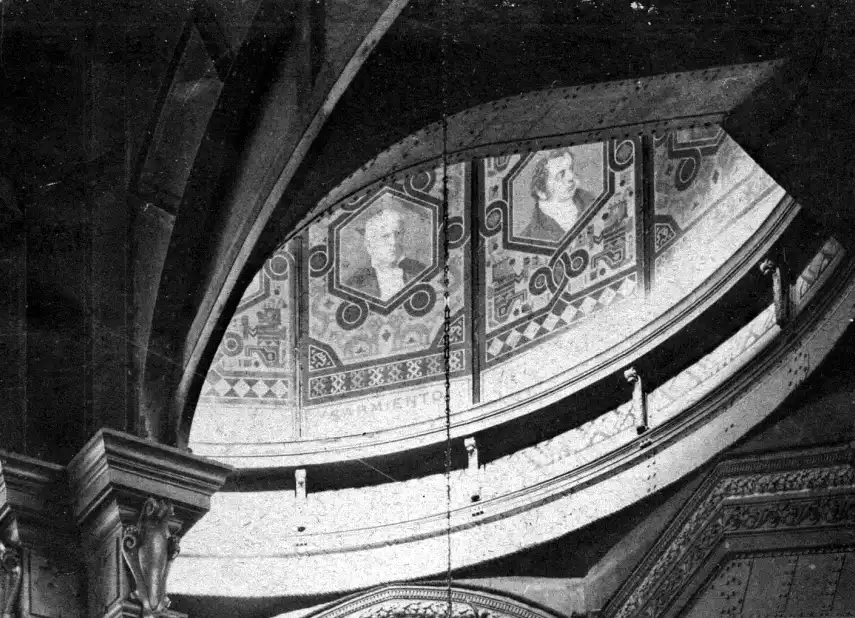 En la parte interior de las cúpulas se colocaron retratos de hombres notables de la República. Una primera selección incluyó a Saavedra, Castelli, Belgrano, Azcuénaga, Matheu, Alberti, Larrea, Passo, Moreno, Laprida, Pueyrredón, Rivadavia, Urquiza, Derqui, Sarmiento, Avellaneda, San Martín, Paz, Brown y Alsina. Hoy todas esas obras se han perdido.