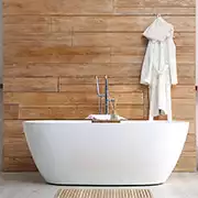 Además, maderas tropicales tales como el teca, el iroko o el bambú son altamente resistentes a la humedad y se pueden utilizar en columnas, biombos o mamparas. Estos materiales, tratados con aceites protectores o selladores, también mantienen su belleza y durabilidad frente al vapor del baño.